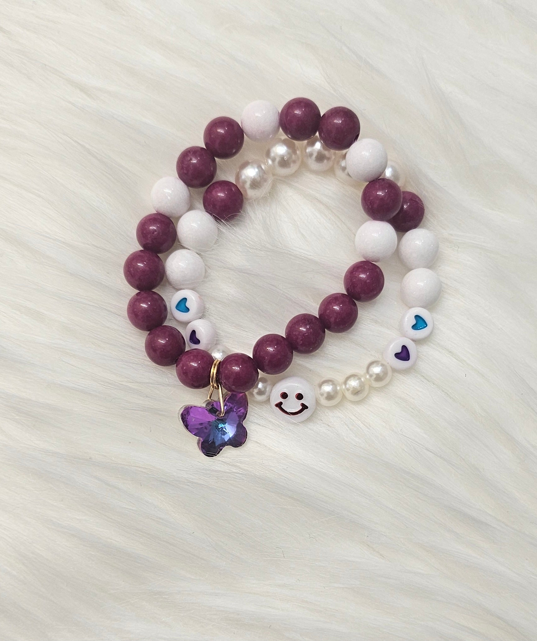 Two (2) piece bracelet set. Fits size six (6) inch wrist. Moderate stretch.