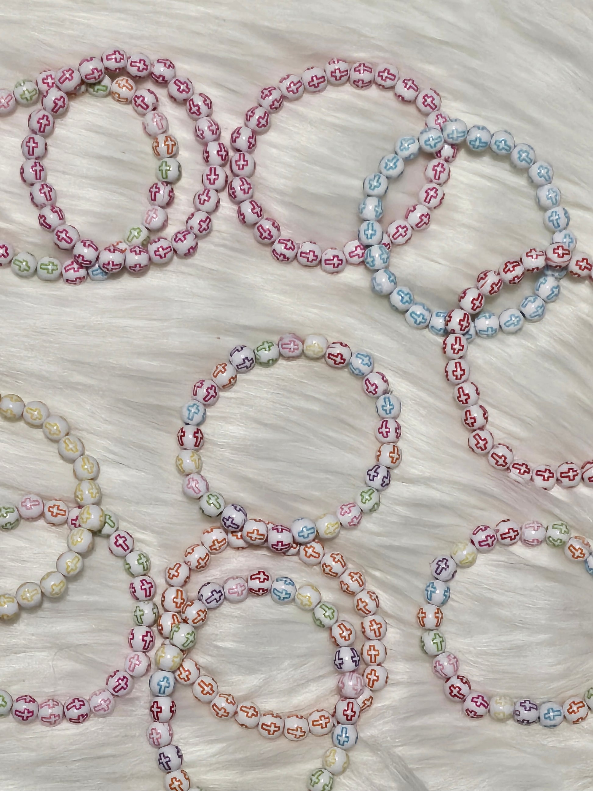 One bracelet selected at random unless color is specified at checkout. Moderate stretch.