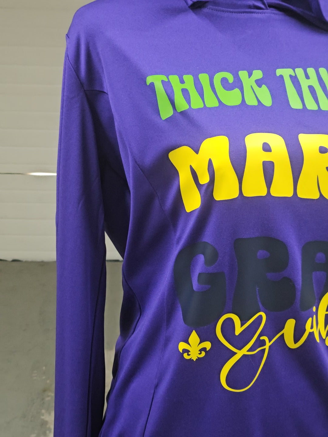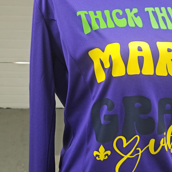 "Thick Thighs" Mardi Gras Lightweight Hooded Pullover